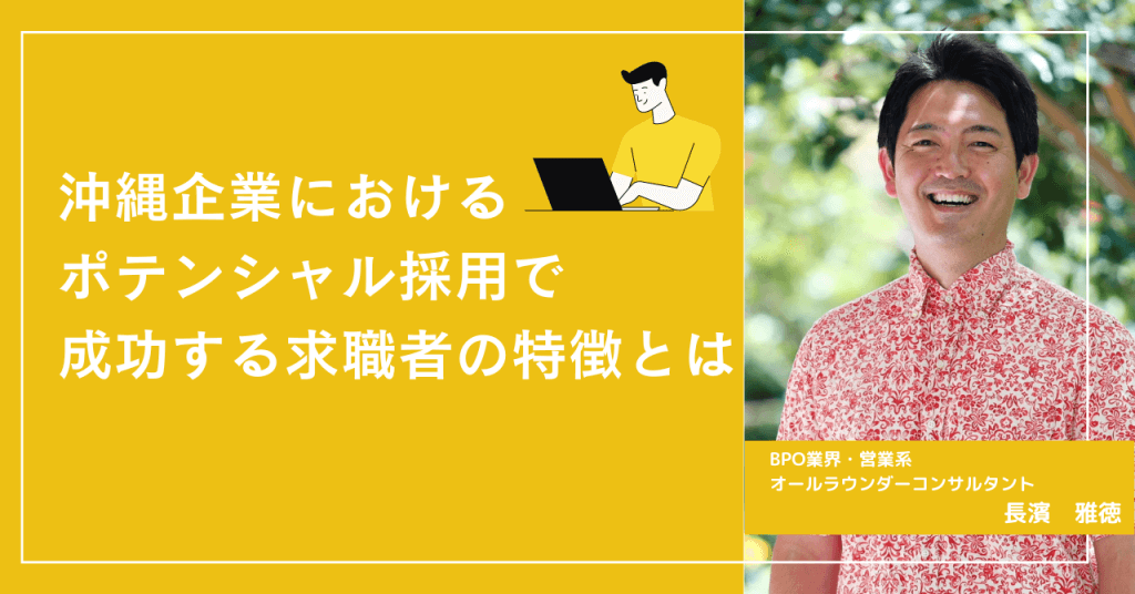 今回は、沖縄企業におけるポテンシャル採用で成功する求職者の特徴にかかわる話をして参りました。今回の情報が、少しでも皆様の参考になりましたら、幸いです。