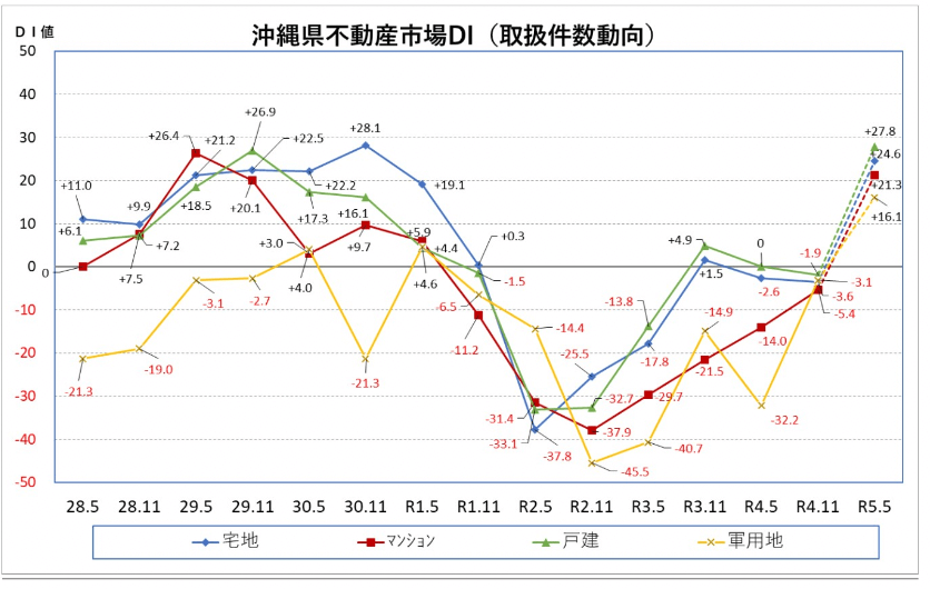 参照:沖縄県不動産市場DI(取り扱い件数動向)