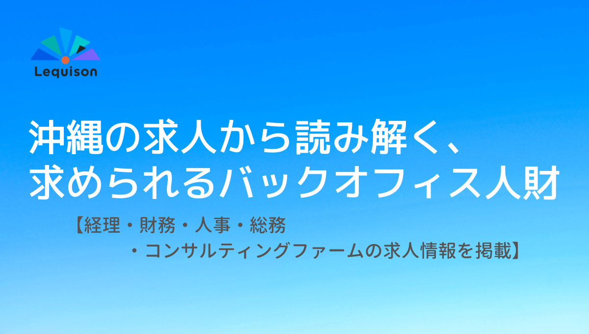 今回は「沖縄の求人から読み解く、求めらるバックオフィス人財」について、触れて参りたいと存じます。