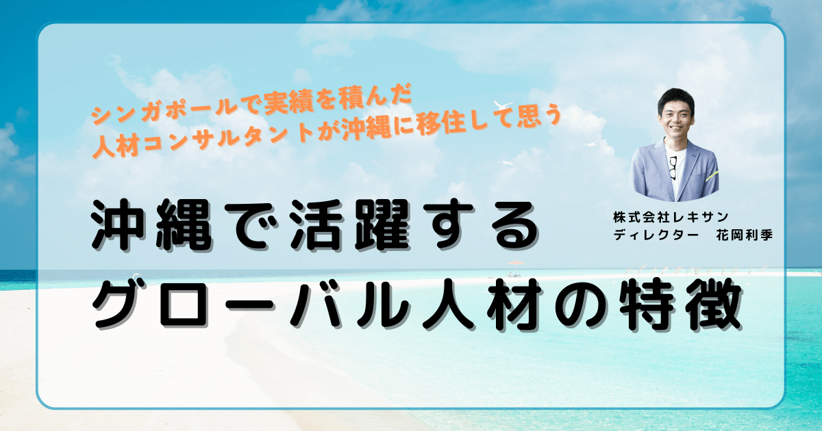 さて、前回は「シンガポールで実績を積んだ人材コンサルタントが沖縄に移住して思う、沖縄の優位性とこれから沖縄が発展していくために必要なこと」と題し、沖縄の発展にはグローバライゼーションがキーになる旨について論じて参りました。