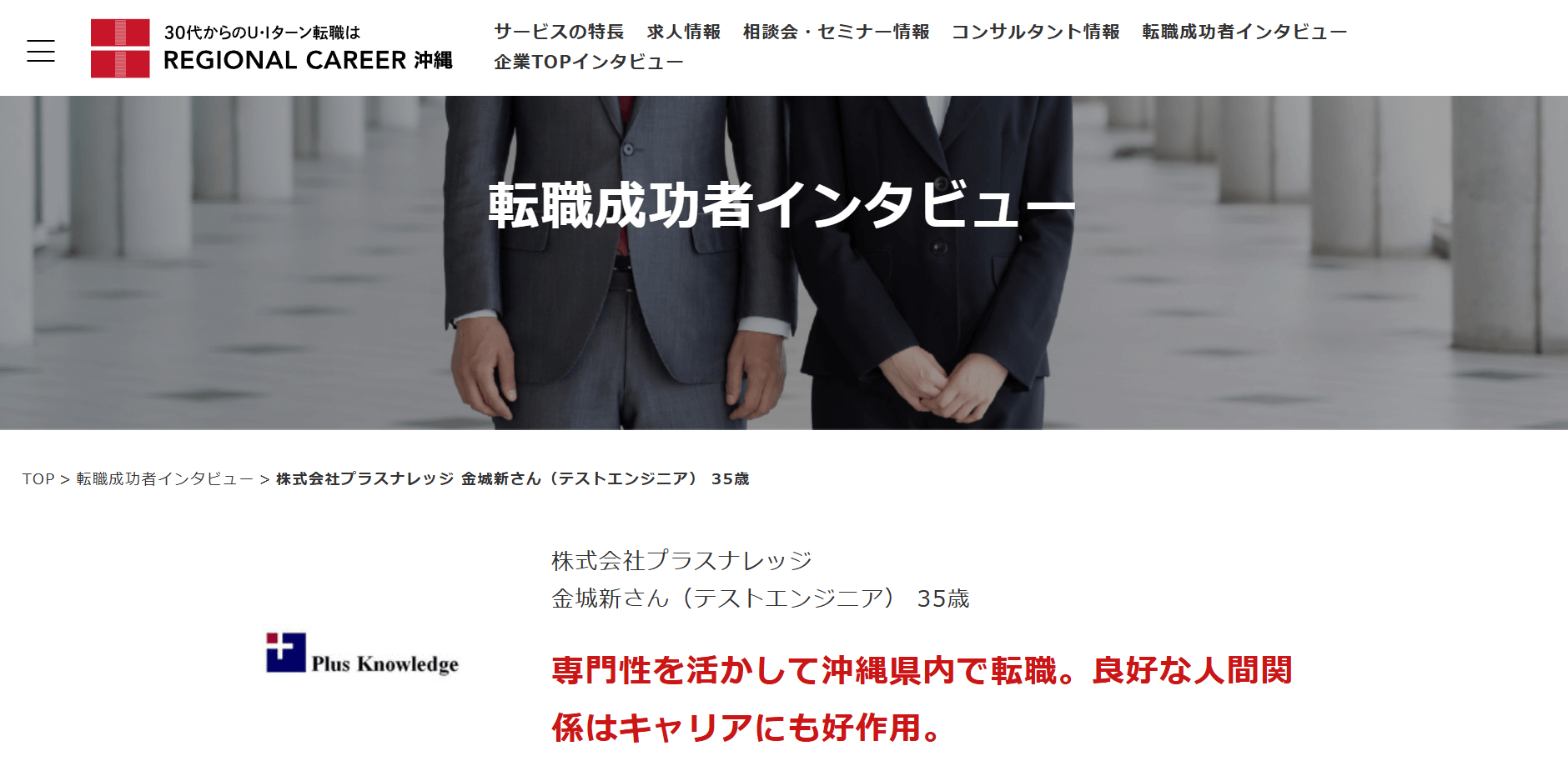 リージョナルキャリア沖縄サイトの【転職成功者インタビュー】という