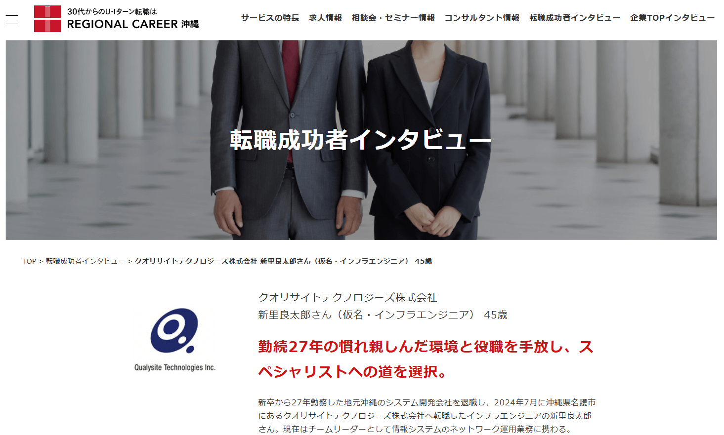リージョナルキャリア沖縄サイトの【転職成功者インタビュー】という
