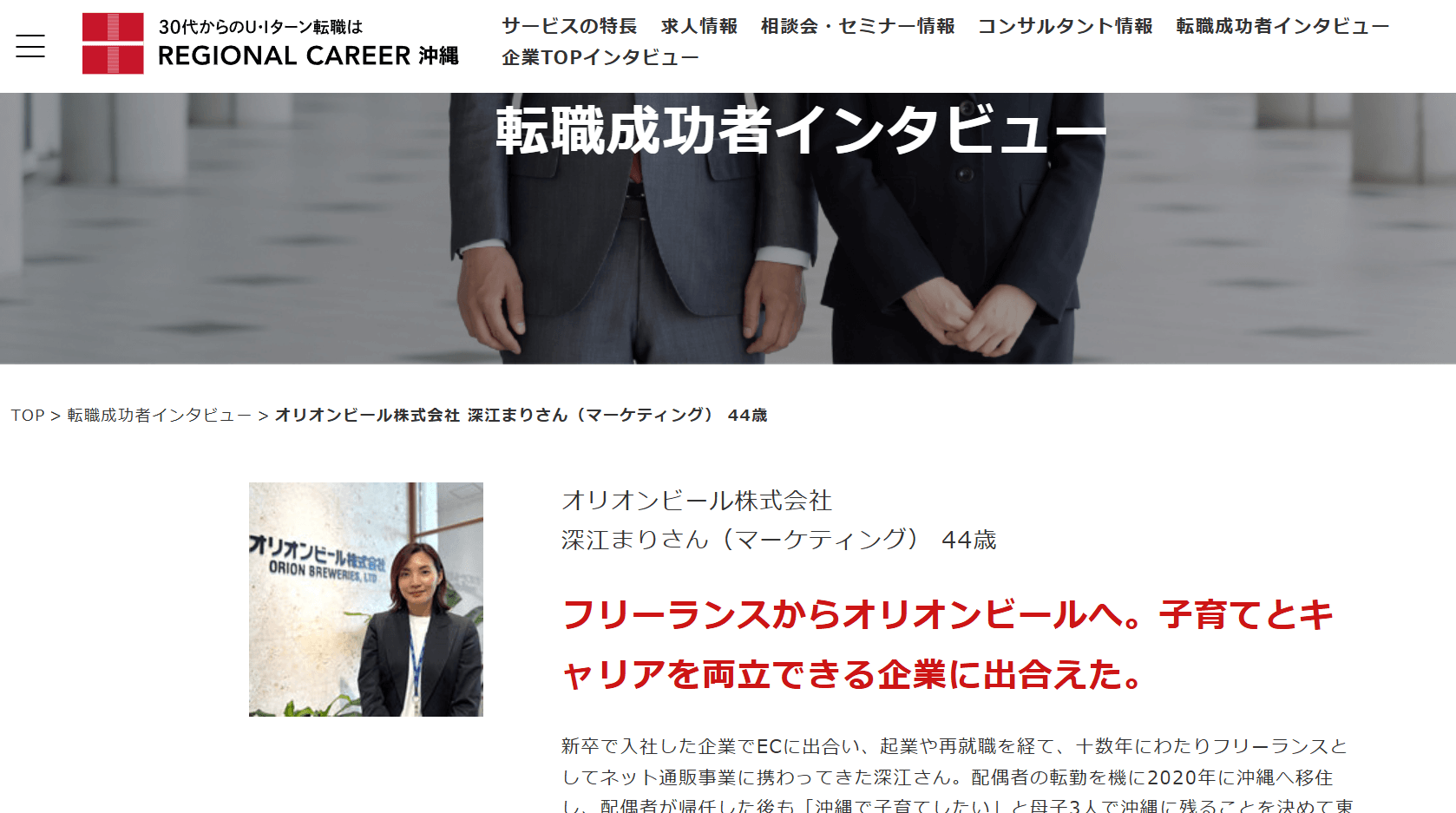 リージョナルキャリア沖縄サイトの【転職成功者インタビュー】という